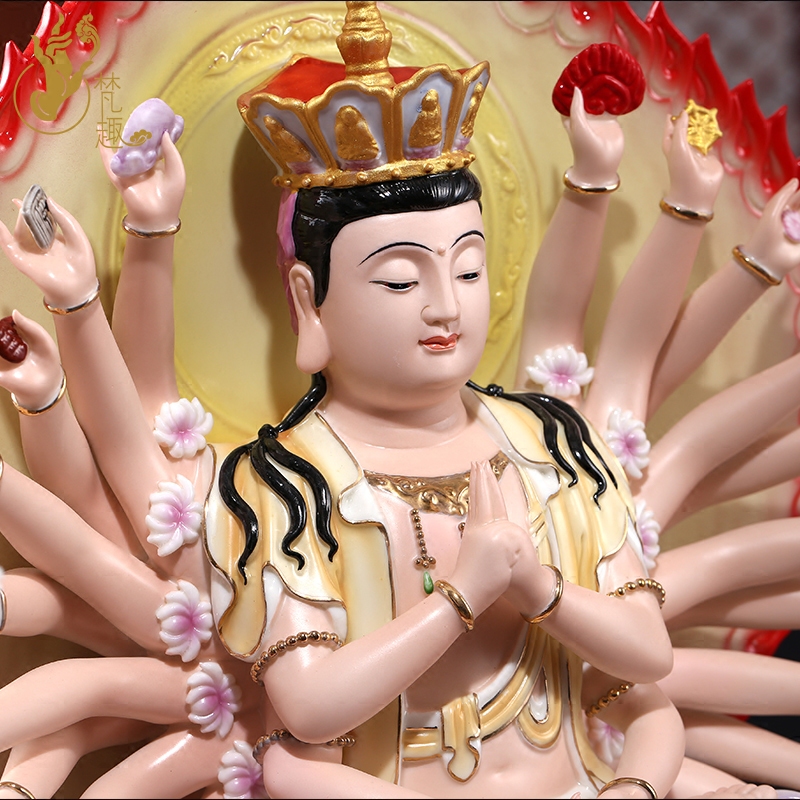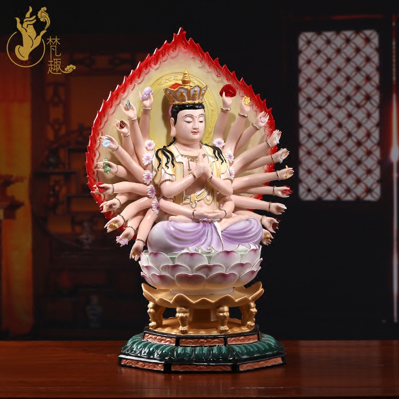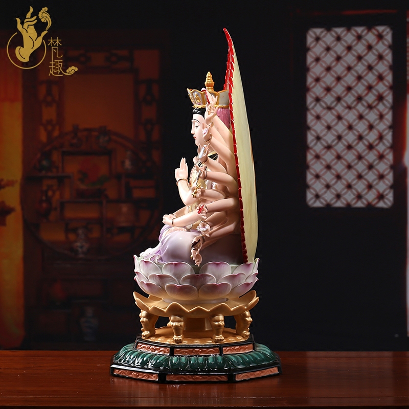 Sanskrit Dehua ceramic painting Zhunti Buddha mother Bodhisattva like a thousand-handed Guanyin painted decoration decoration religious Buddha statue
