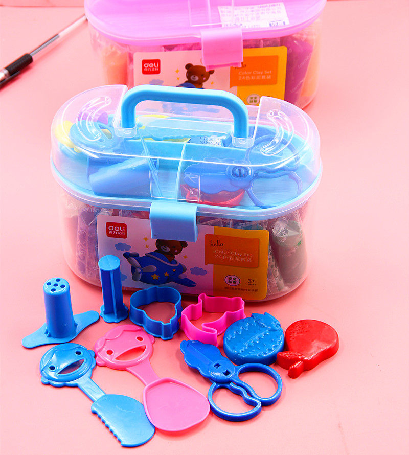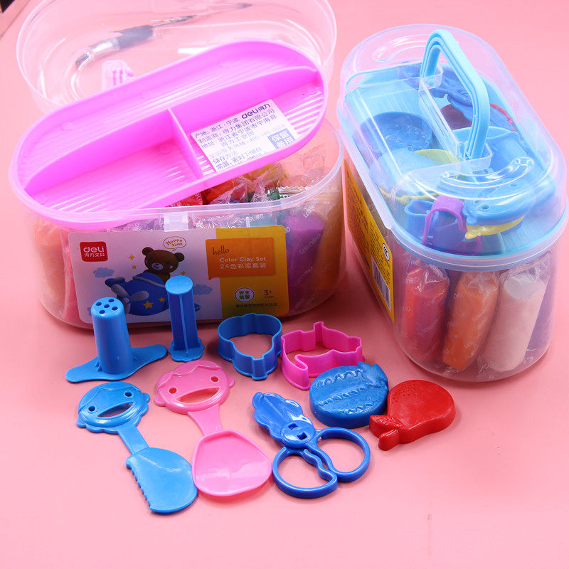 Deli plasticine 24 colors like skin mud Children's color mud handmade mud Elementary school students handmade plasticine set with mold kindergarten baby toys plasticine portable bucket