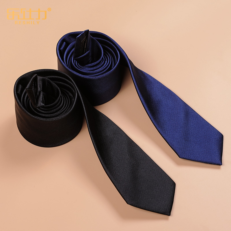 Lesili men's tie Business casual solid color twill free ironing Trendy men's fashion black and blue 6CM Korean version of the small tie