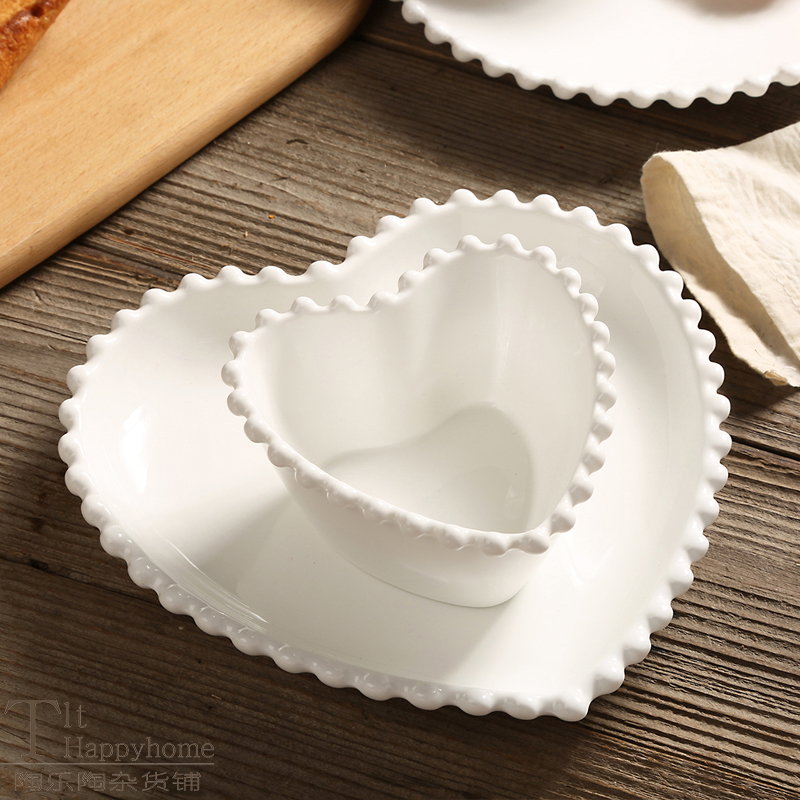 Princess Fan Nordic style Western Dining Pearl Side Lace Pure White Ceramic Breakfast Steak Cutlery Salad Rice Bowl Flat Pan