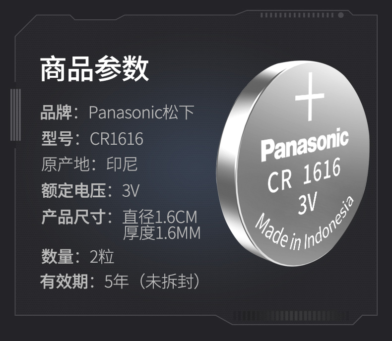 Panasonic CR1616 button Lithium Battery 3V Computer Motherboard Electronic Scale Millet Remote Control Key Single Grain