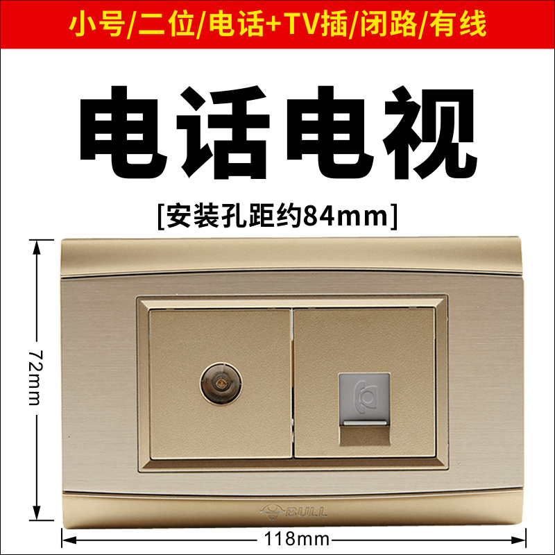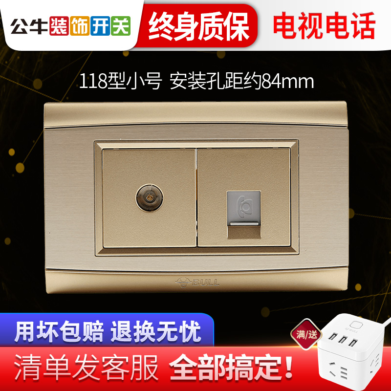 Bull switch socket type 118 brushed gold weak telephone closed circuit TV home wall telephone TV socket panel