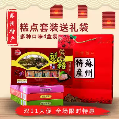 Suzhou specialty halva gift bag Pastry gift box Osmanthus flower peanut sesame halva combination 800g 4 boxes of food