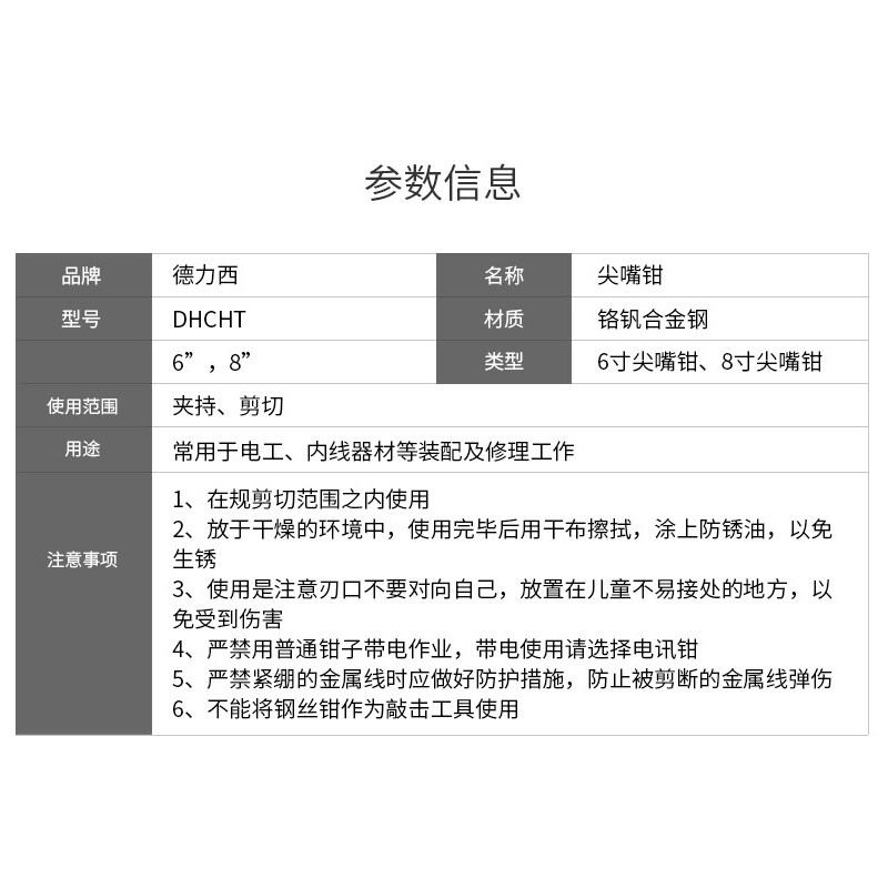 Delixi tip pliers 6 inch 8 inch tip pliers tip pliers multi-function hand tools Electrical tip pliers