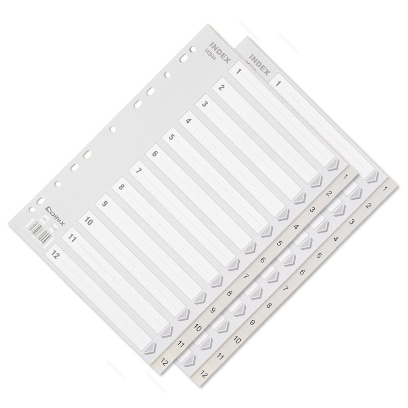 Qi Xin IX894 Easy classification annual index paper A4 12 pages 1-12 11 holes PP plastic classification paper Spacer loose-leaf paper catalog