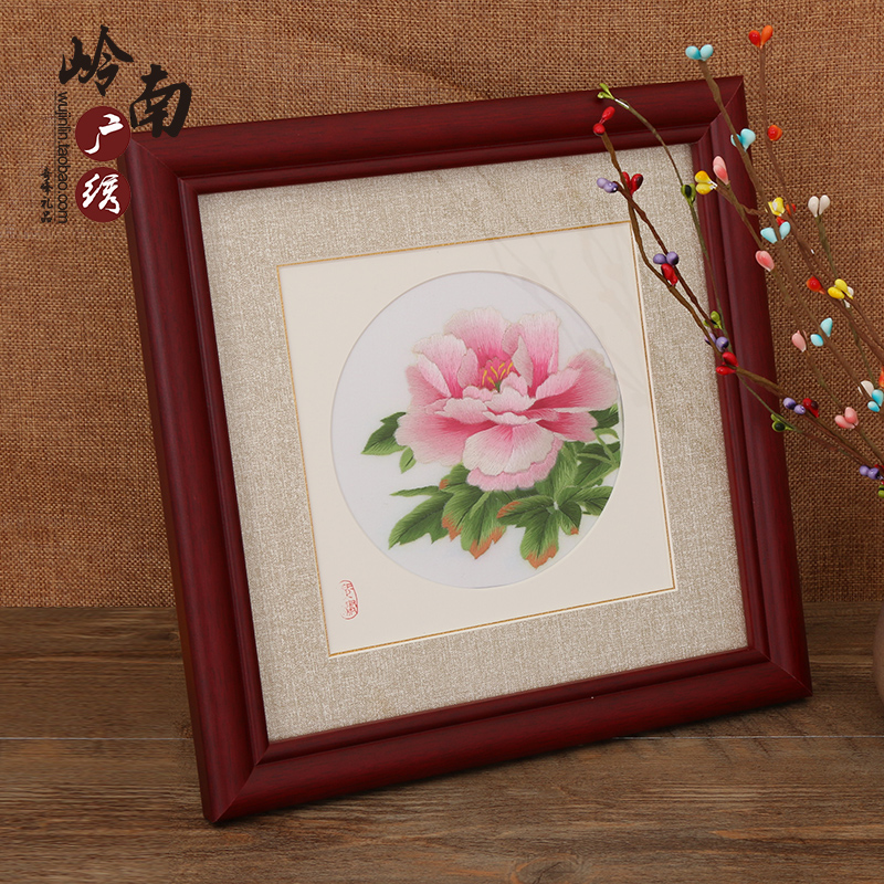 Lingnan featured wide embroidered Cantonese embroidered hand-embroidered painting rich and expensive peony living-room bedroom decoration hanging painting and sending customers old and outside