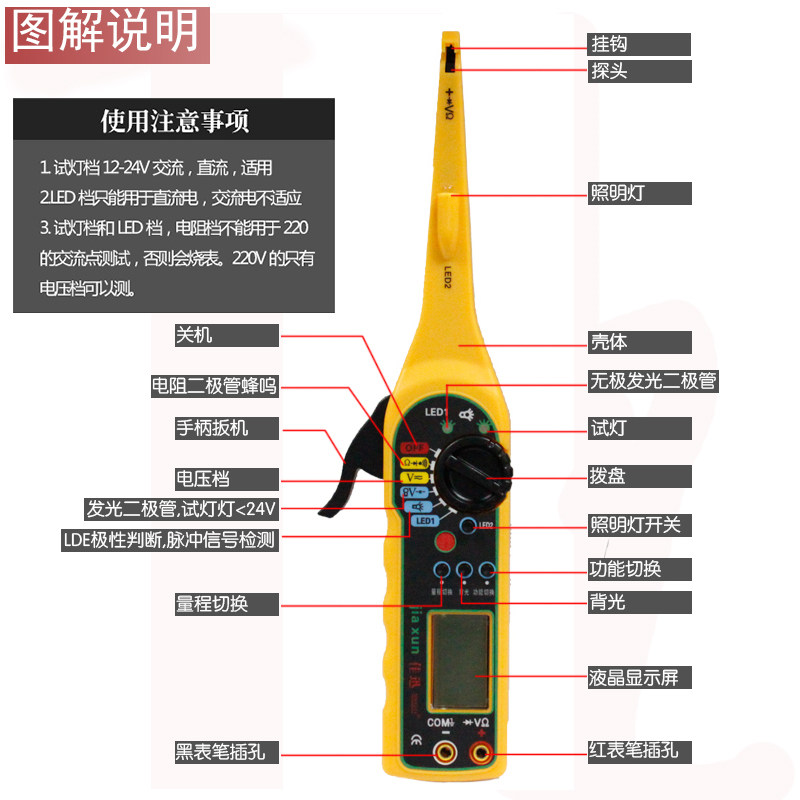 Automotive circuit detector Jiaxin second generation automotive circuit detector to explore the test light Jiaxin MS8211