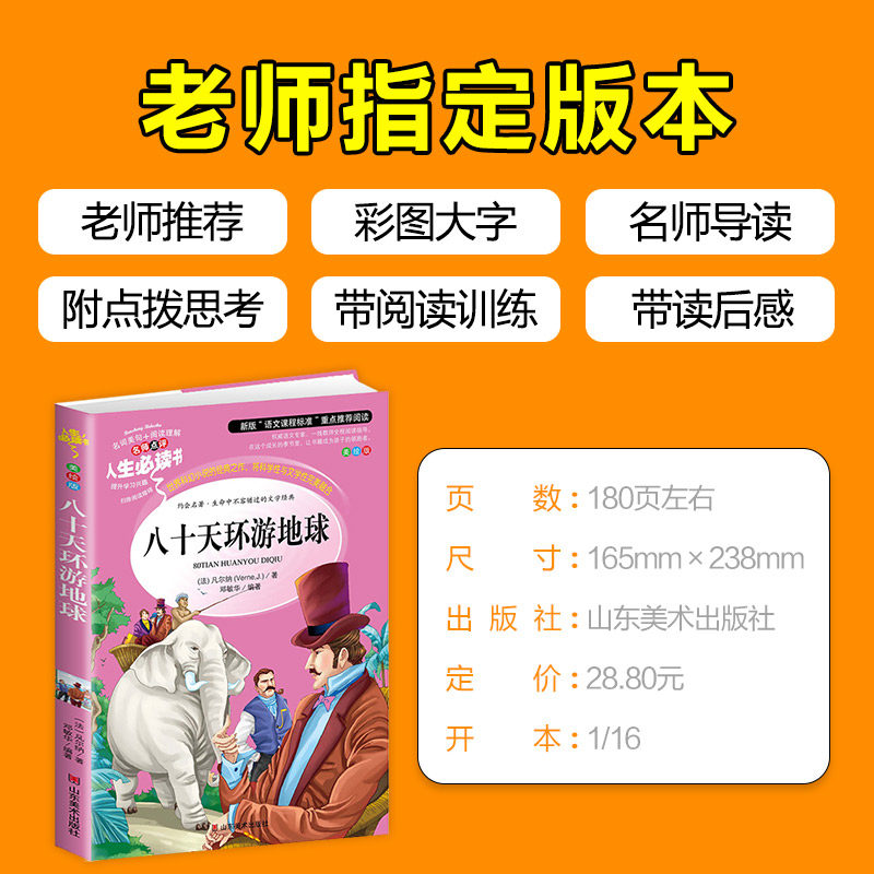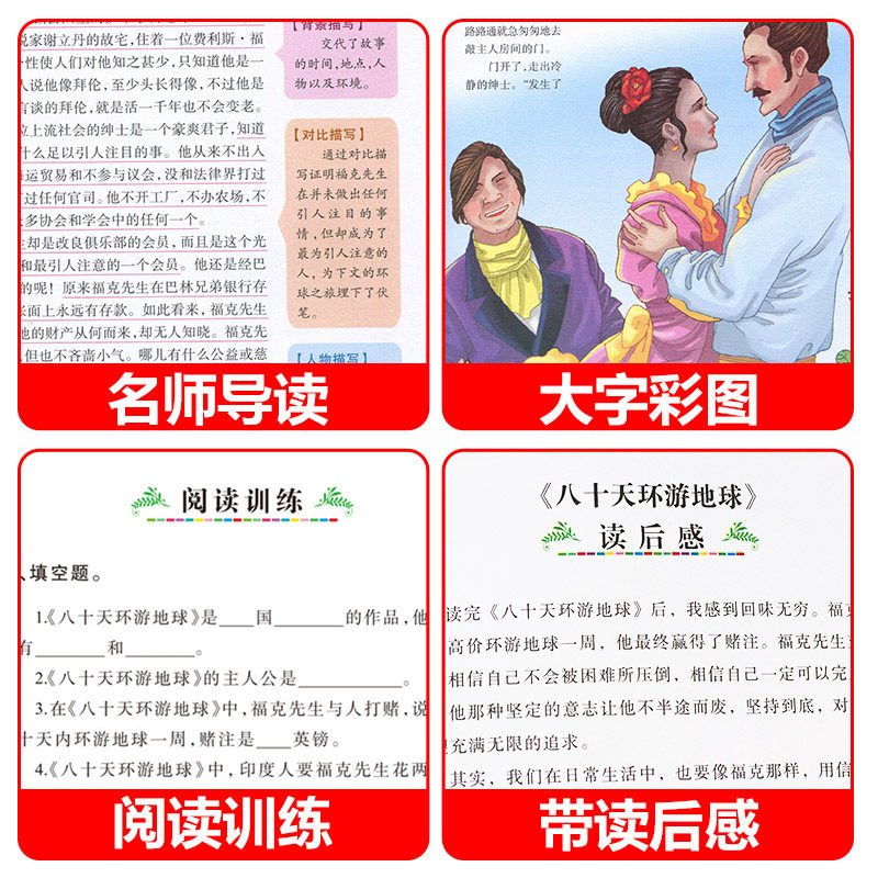 Around the Earth in Eighty Days Primary School Students' Genuine Color Pattern Barrier-Free Reading 7-8-9-10-12 Years Old Youth Edition Children's Literature Books World Famous 3-6 Third Grade Fourth Grade Extracurricular Books