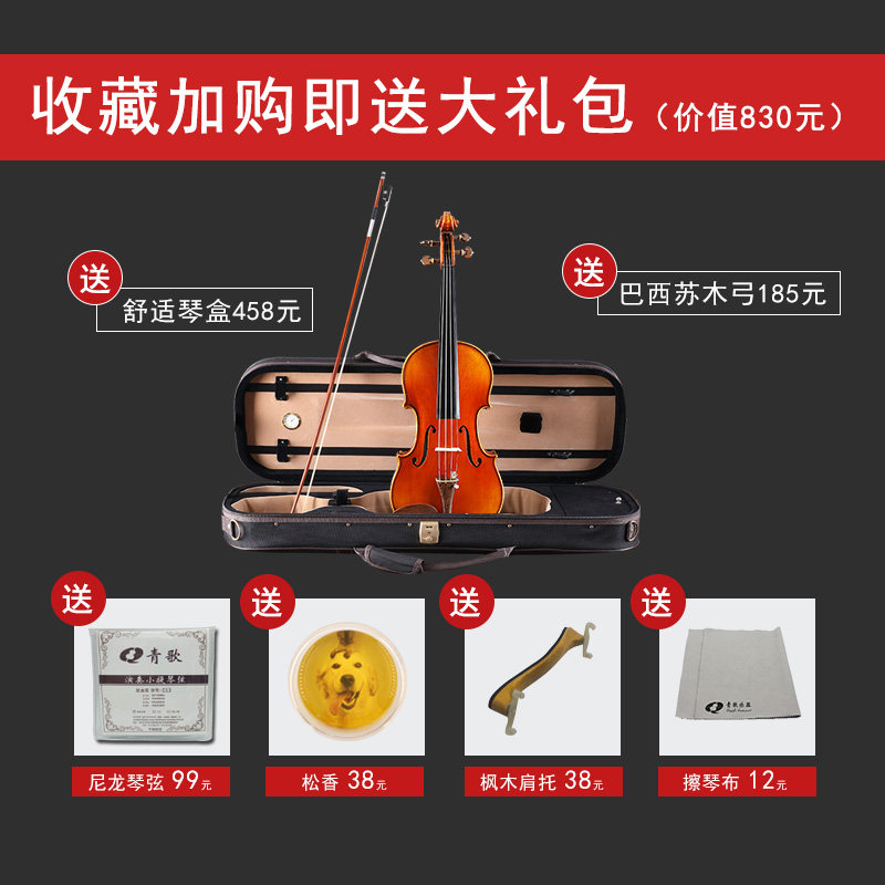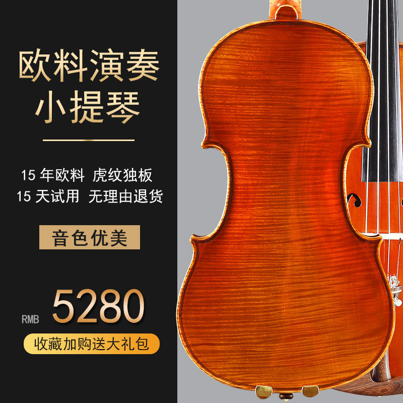 Qingge QV411 playing grade violin master pro-made handmade tiger pattern single board European material adult violin