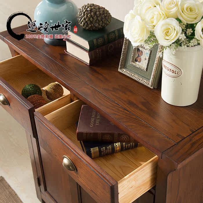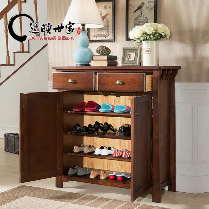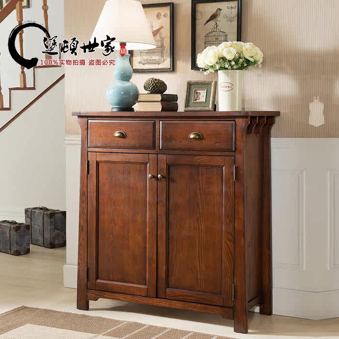 American Fort ton family solid wood upscale large capacity white wax wood furniture storage cabinet double door shoe cabinet