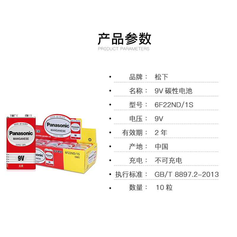 Panasonic 9V square large battery 6F22 body temperature gun universal laminated square carbon smoke alarm microphone multimeter battery nine-volt microphone universal meter toy car remote control