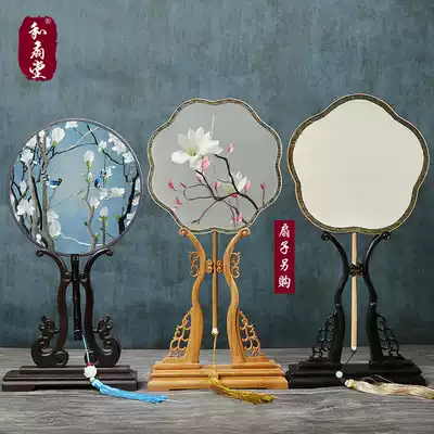 Hutang embroidery Group fan Palace fan purple sandalwood Ebony Rosewood Rosewood fan base fan round fan shelf