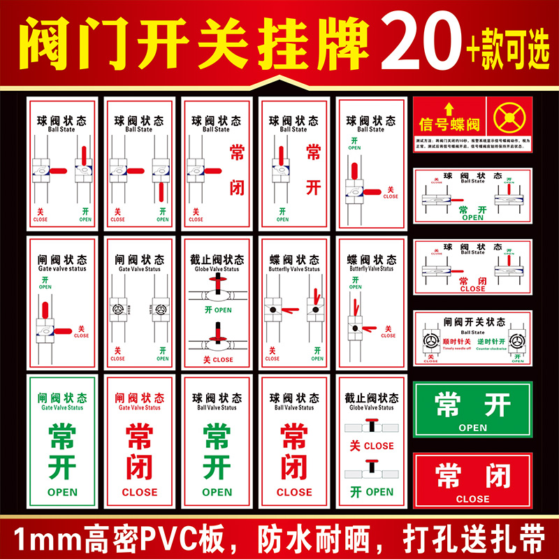 Property Garage Fire Spray Piping Valve Switch Sign Ball Valve Status Often Open Closed Pvc Mark Gate Valve Status Card Butterfly Valve Stop Valve Open Shut-off Cards Acrylic Plate Set-Taobao