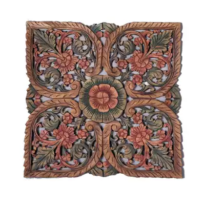 Thailand imported craft gift decoration teak carving Lotus wood carving pendant Thai carving board wood carving porch ornaments
