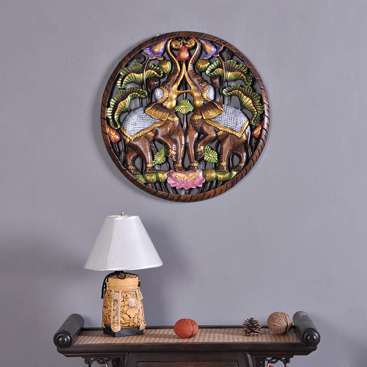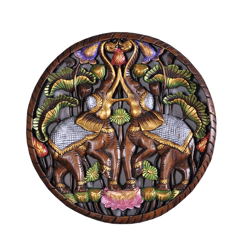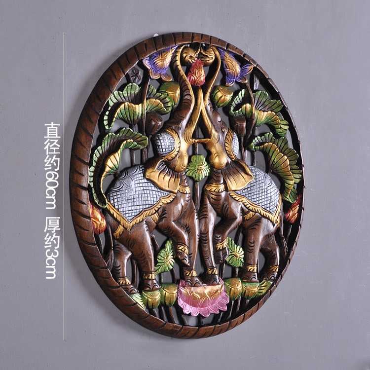 Thai import teak wood carving flower board Southeast Asian home decoration products Xuanguan wood Carved Elephant Hung Painting Wall-mounted Wall Decoration