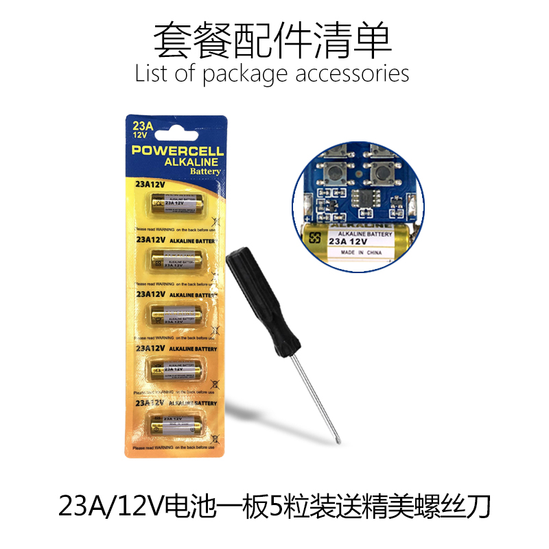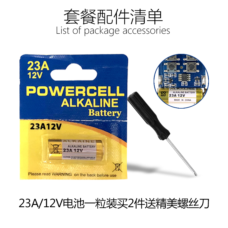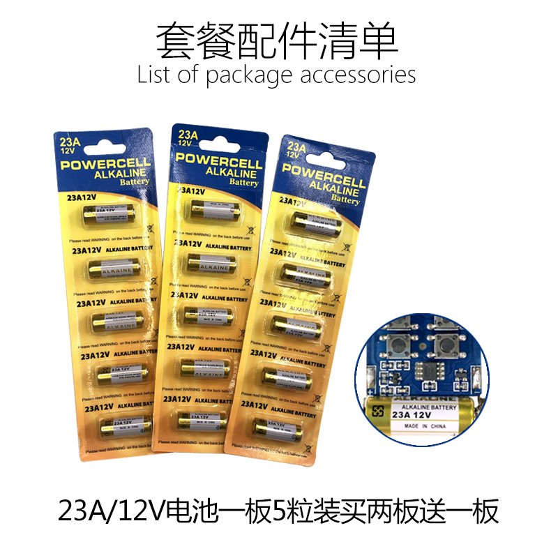 23A12V (one plate 5 grain) 27A12V (one plate 5 grain) CR2032 (one plate of 5 grain) 23A12V (2 plates with 3 plates of 15 grain) 27A12V (