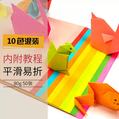 Yue Sheng origami color photocopy paper-cut Book 80g fluorescent color handmade paper material mixed color Square Kindergarten Children DIY multifunctional Thousand Paper Crane convenience sticker