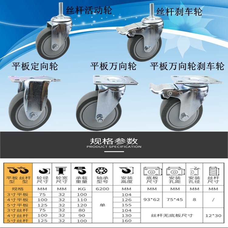 3-inch flat universal brake wheel 3 inch flat universal wheel 3 inch flat directional wheel 4 inch flat universal brake wheel 4 inch flat universal wheel 4 inch flat directional wheel 5 inch flat universal brake wheel 5 inch flat plate ten thousand