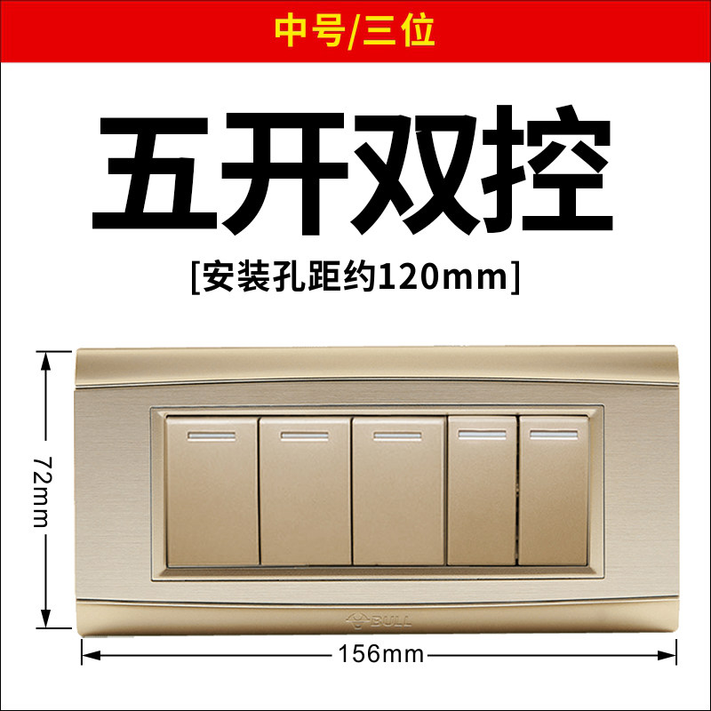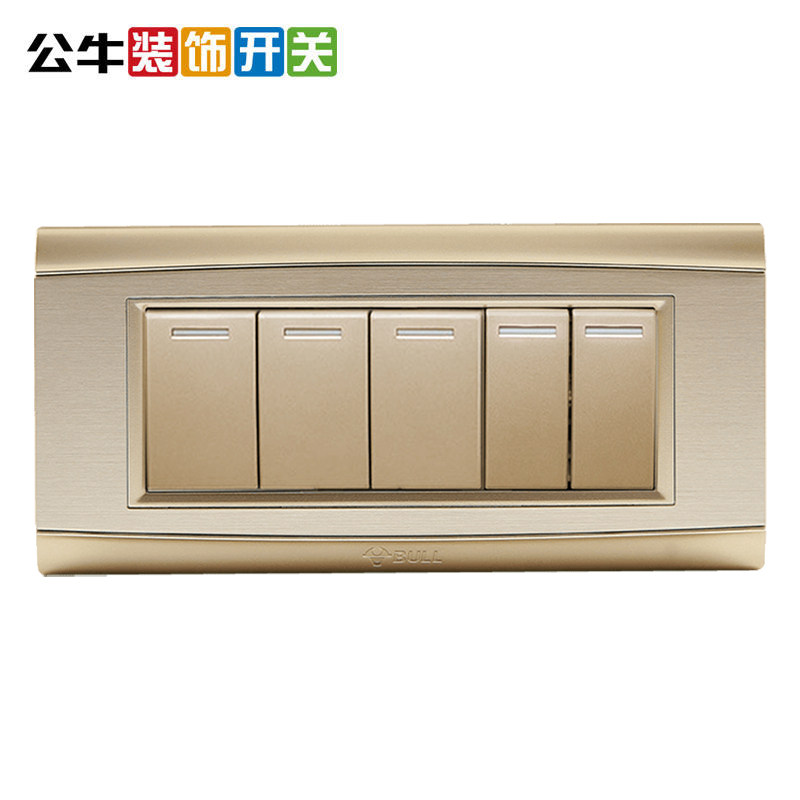 Bull 118 Type Power Switch Panel Wire Drawing Gold Five United Three Five Open Double Cut Wall Trim Switch Home