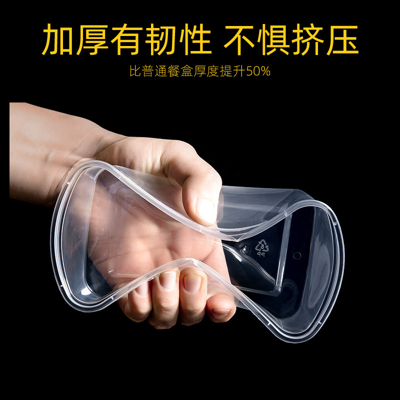 Rectangular 1250ml Disposable Meal Kit Plastic Transparent Lunch Box Takeaway Packaging Box Fruit Cartridges Lid Snack Box