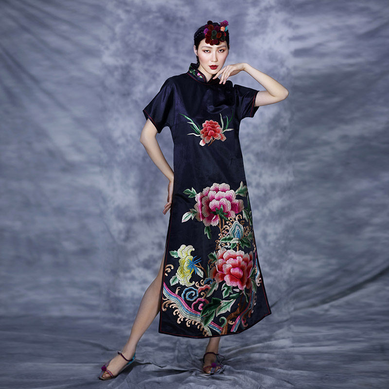 Picture color style can be customized Royal blue sold non-returnable Hand embroidery silk satin