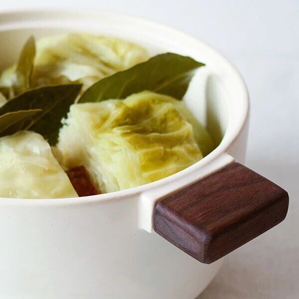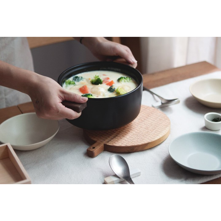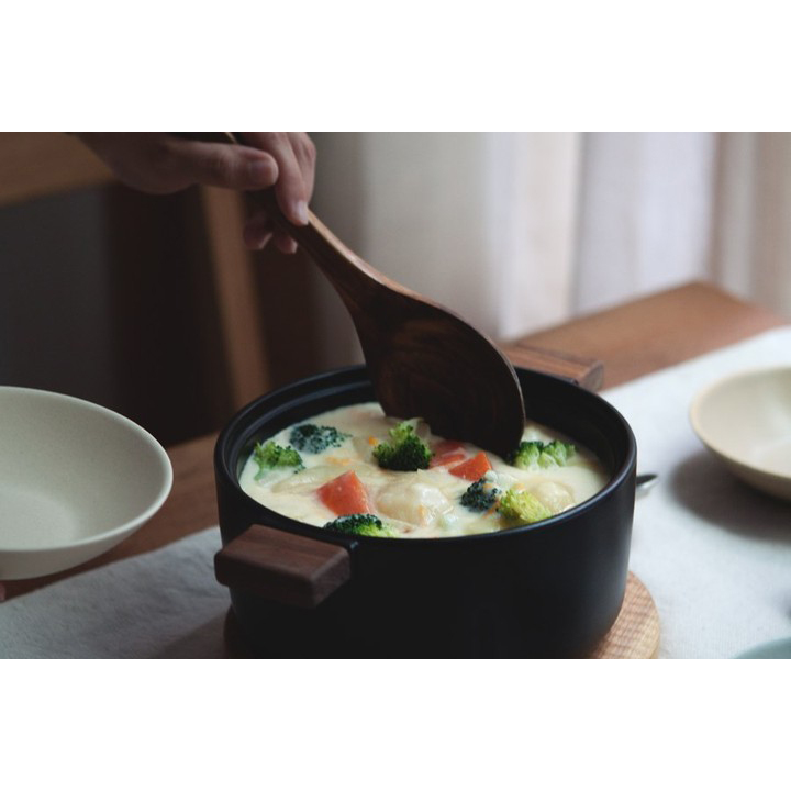 Japan's Vangu 4th - market wooden handle with two ears heat - resistant ceramic stew cook pot