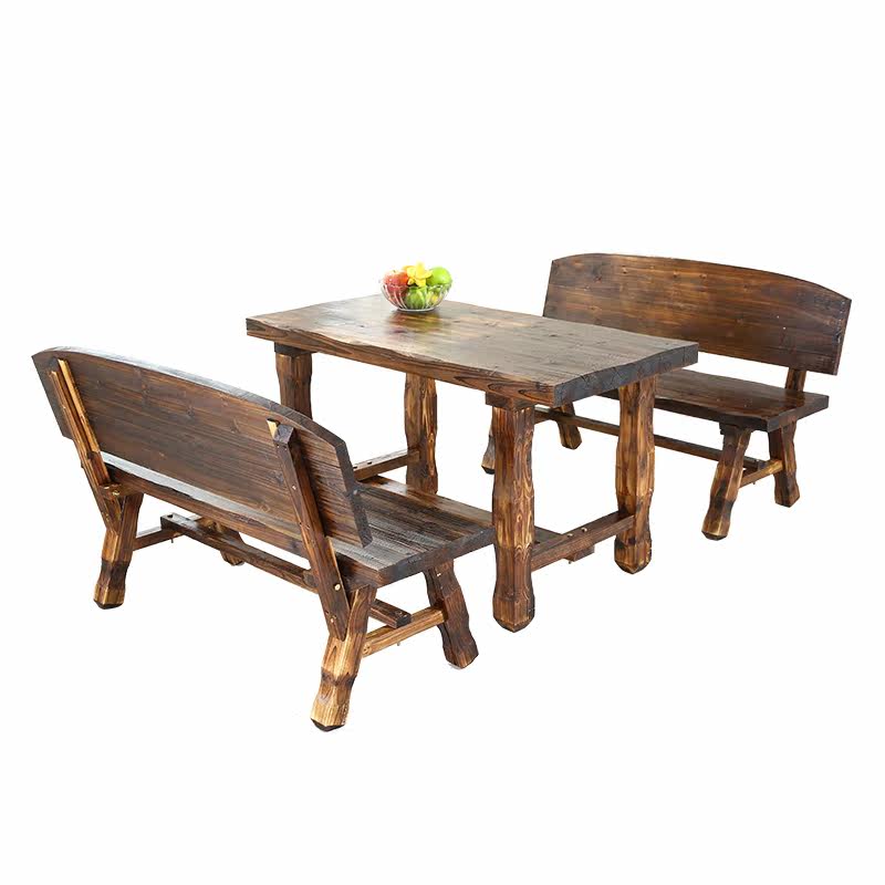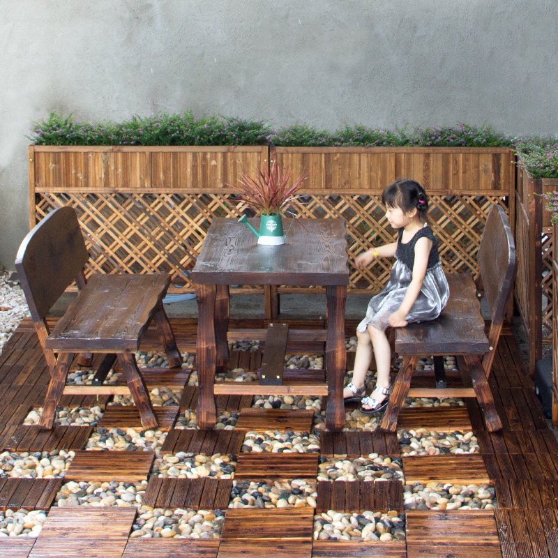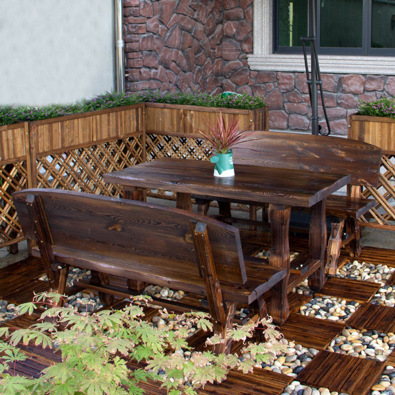 Outdoor table and chair combination greenhouse table and chair set carbon carbonized anti-corrosion solid wood open-air outdoor courtyard balcony drinking tea