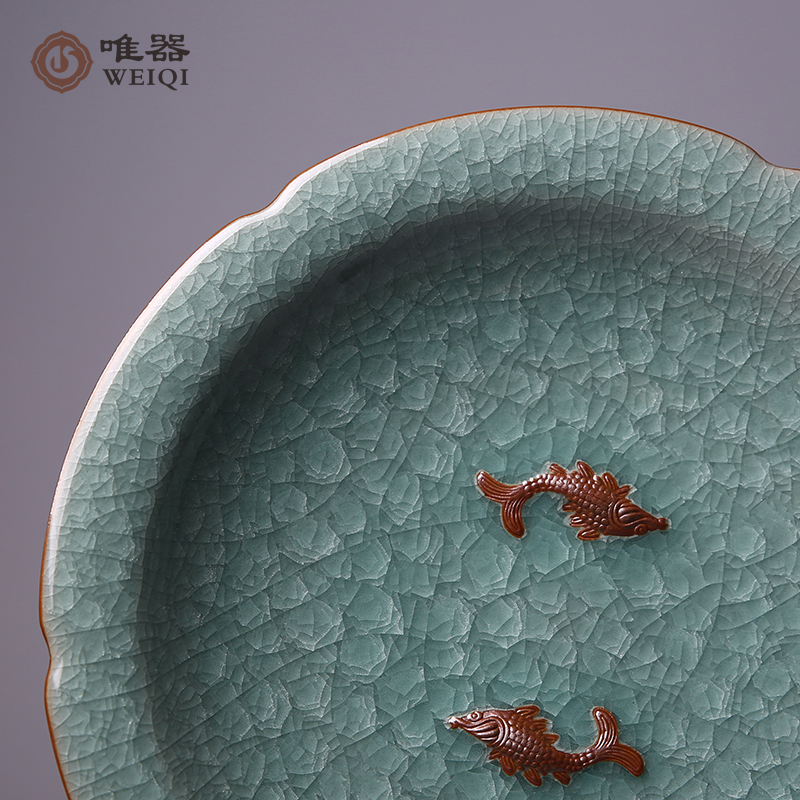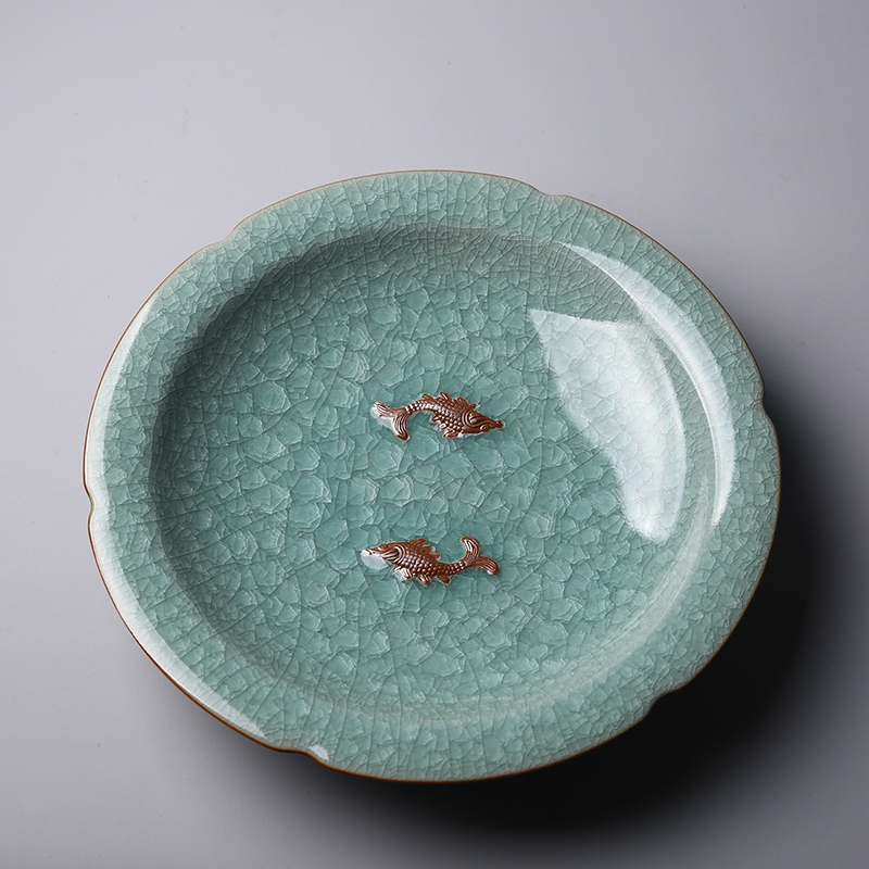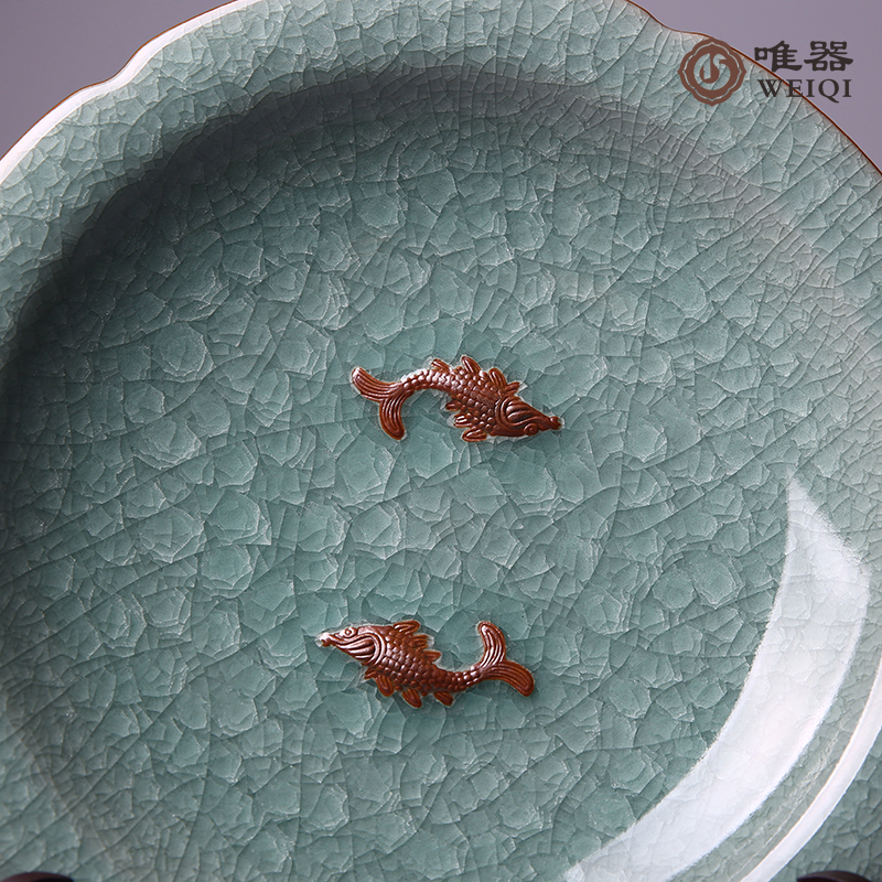 Green porcelain master Ye Xiaochun All handmade Gothic kilo ice cracks Double fish dishes Hanging Trays Home Swing Accessories Collection Gifts