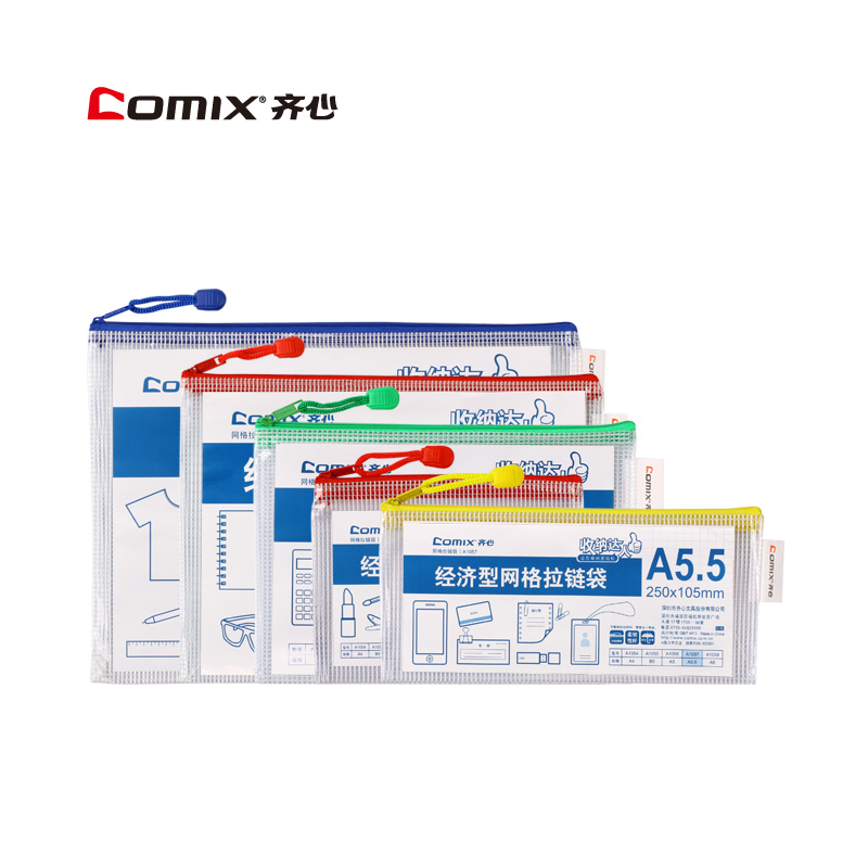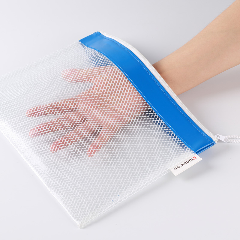 Qixin A4 mesh zipper bag A5 file bag B5 portable file bag student stationery bag B6 classification bag 5 packs storage bag document bag A6 waterproof transparent pencil case plastic PVC