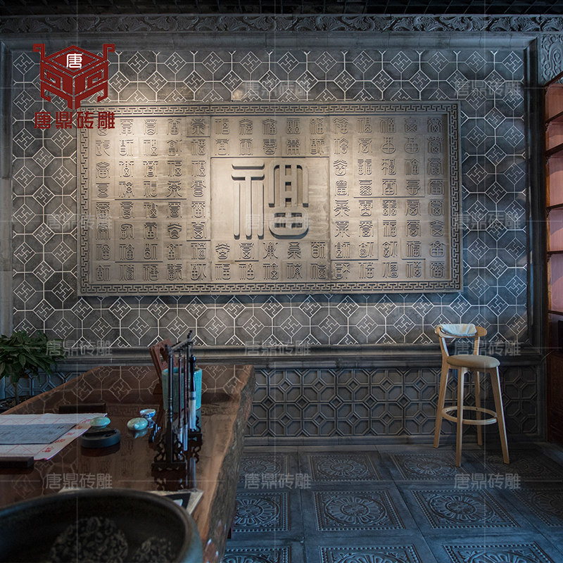 Tang Tripod Brick Sculptures Octaxian Oversea 3 * 1 5m Chinese Green Brick Imitation Ancient Shadow Wall Photos Fresco reliefs embelicate Emblem Courtyard