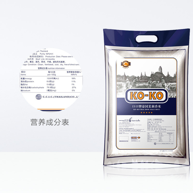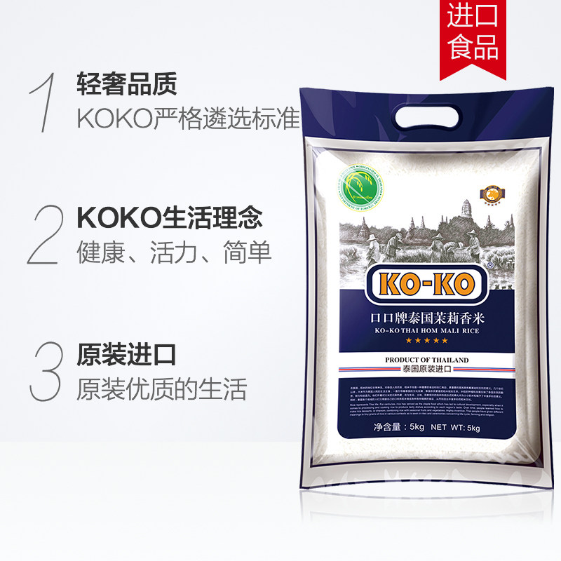 (Original imported)) KOKO Thai Jasmine Rice 10 kg (Blue Version) Thailand imported rice 5KG