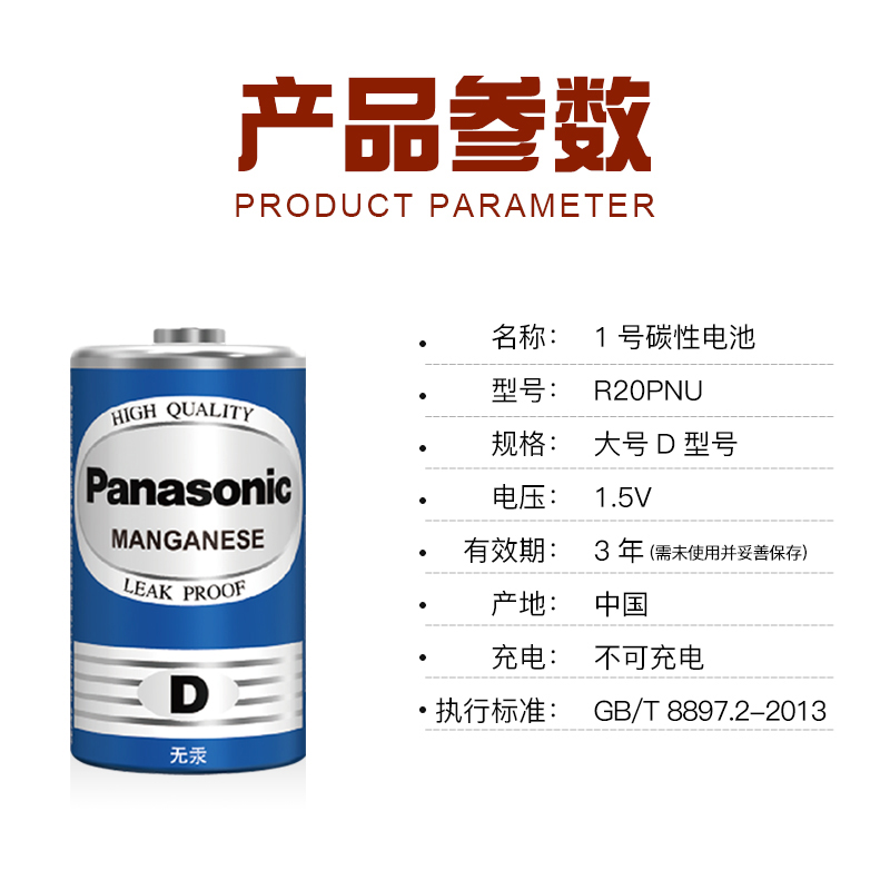 Panasonic No. 1 Battery No. D Type No. 1 Large Carbon R20 Water Heater Gas Stove Natural Gas Stove Liquefied Gas Stove Flashlight Battery Wholesale 1.5V Dry Battery Fenglan Wholesale