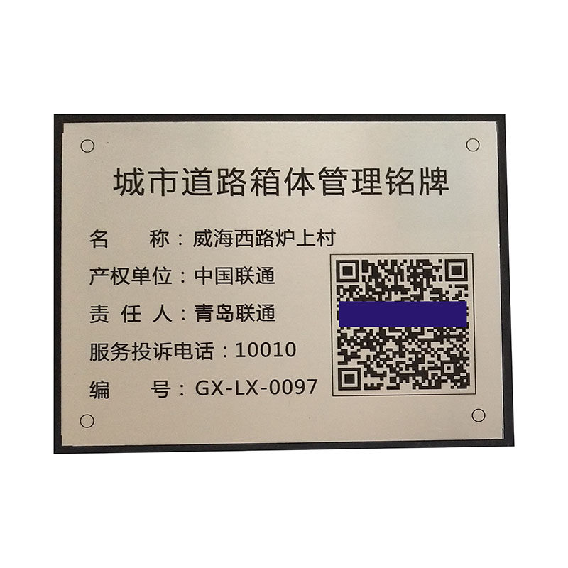 Stainless steel nameplate corrosion engraving aluminum brand custom machinery equipment aluminum nameplate laser engraving QR code