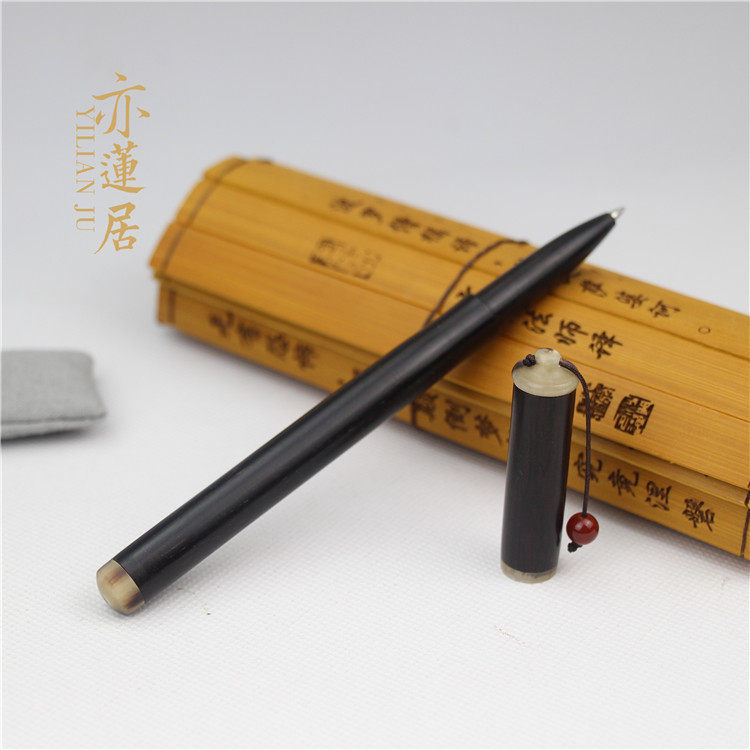 Yilianju Solid Wood Signature Pen Ebony Wood Inlaid Horn Bead Pen High-end Business Gel Pen Gift Customization