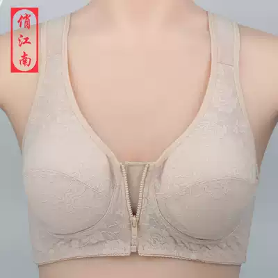 Middle-aged and elderly mother zipper front button bra large size old man without steel ring cotton underwear ladies bra thin summer