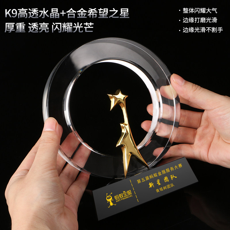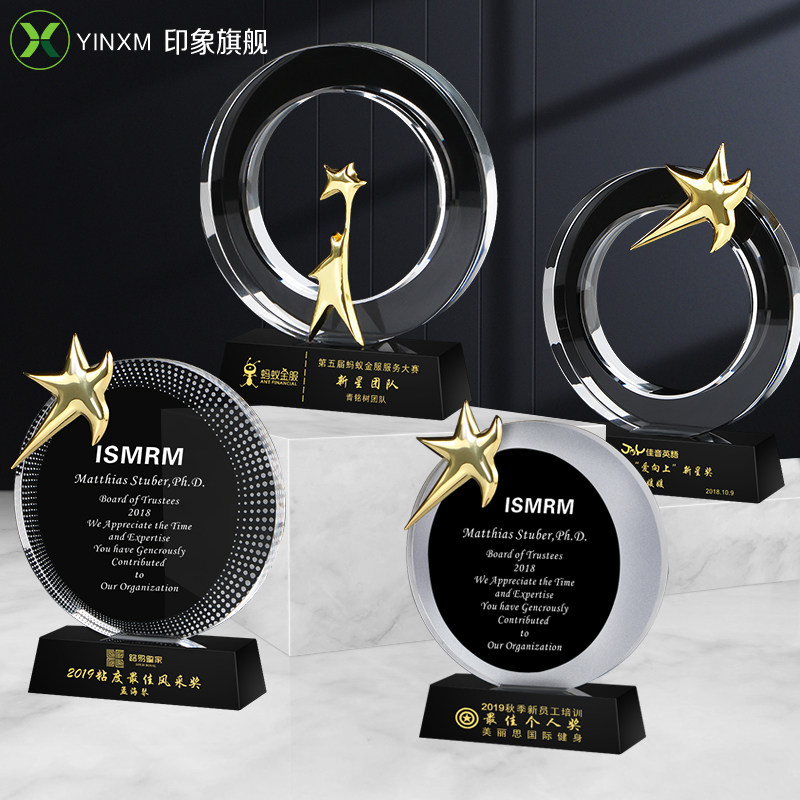 Crystal Glass Trophy Custom Excellent Employee Trophy Production Enterprise Annual Conference Awards Engraved Pentagram Trophy