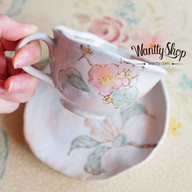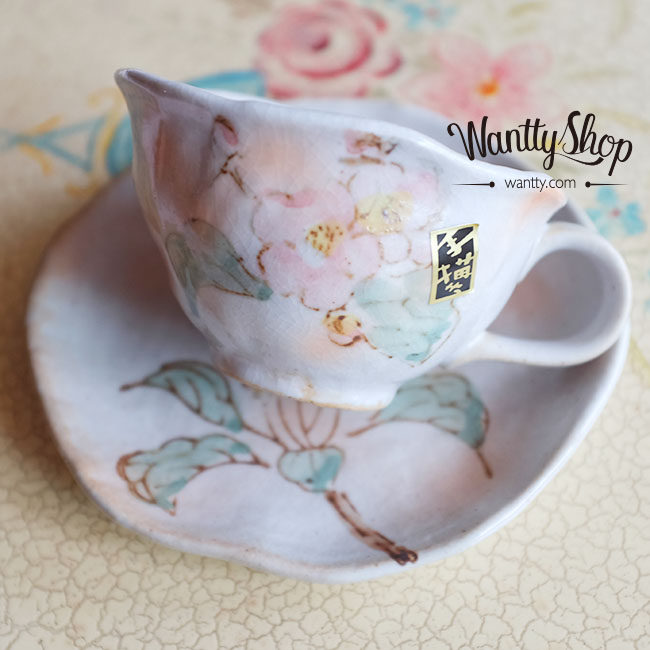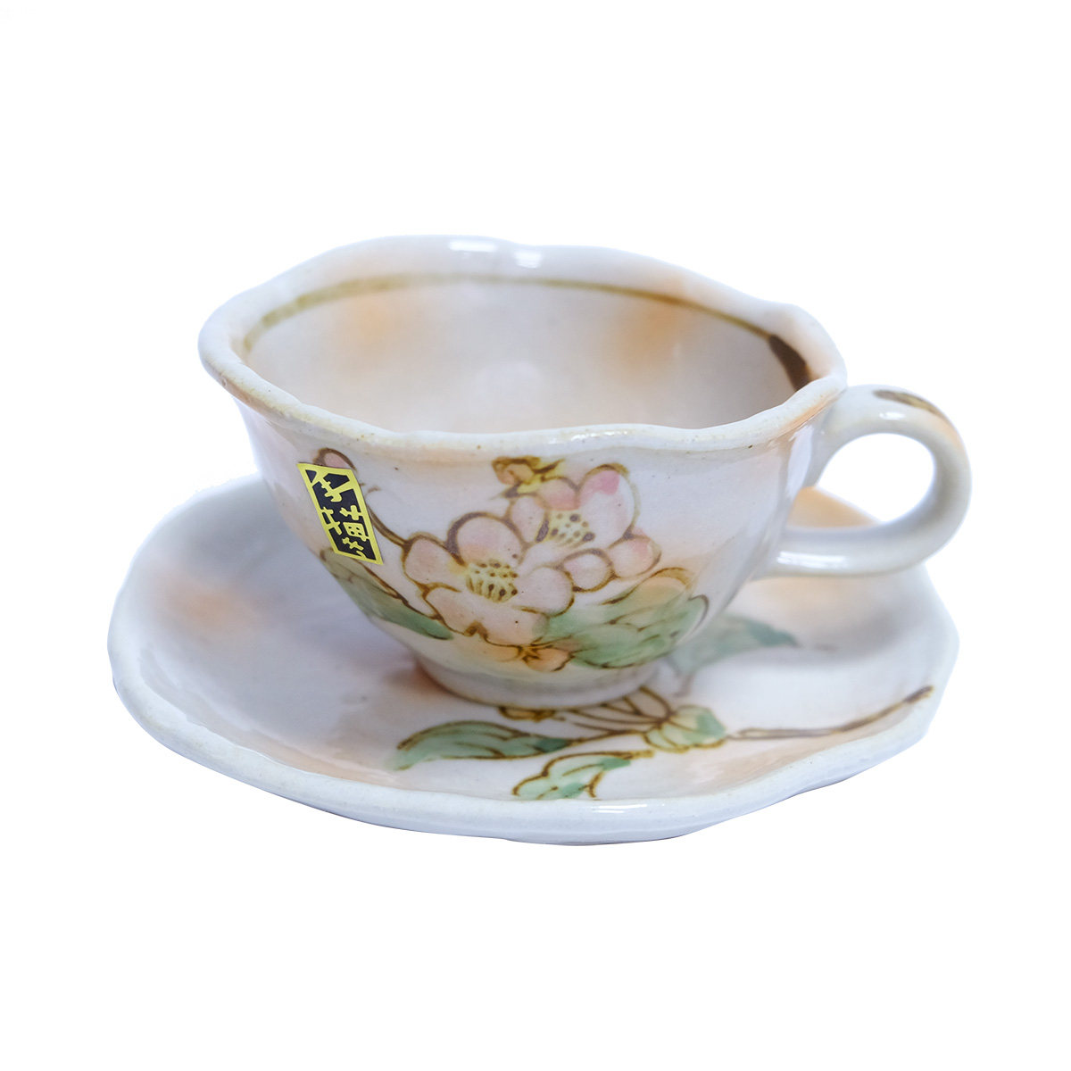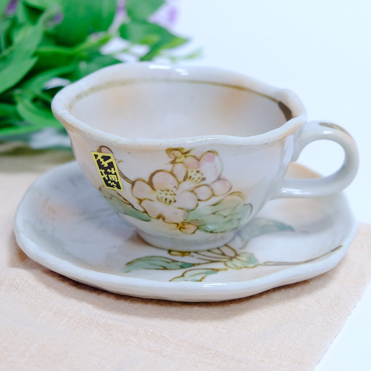 Spot Japanese Mino burning hand-painted retro cherry blossom pattern underglaze color coarse ceramic afternoon black tea coffee cup and saucer set