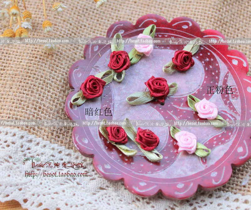 New Arrival DIY Wedding Dress Decoration Accessories Satin Ribbon Pink Handmade Rose Flower Beautiful Applique 2 3cm