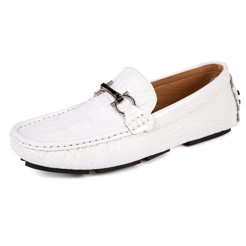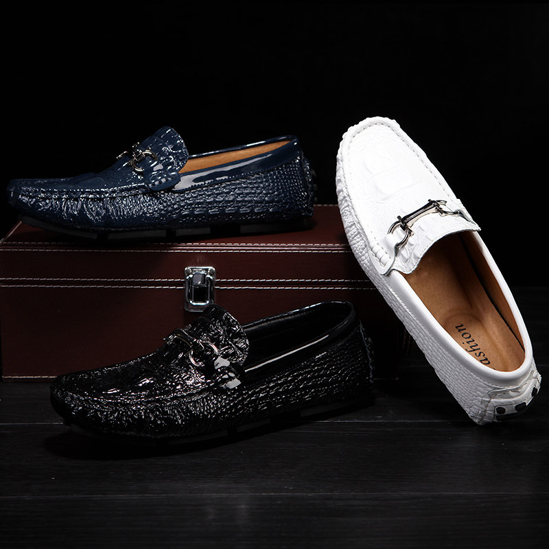 Spring Summer Crocodile Crocodile Bean shoe Men's genuine leather Lazy Shoes Korean version Men's 37 Little code casual shoes 45 46 47 47