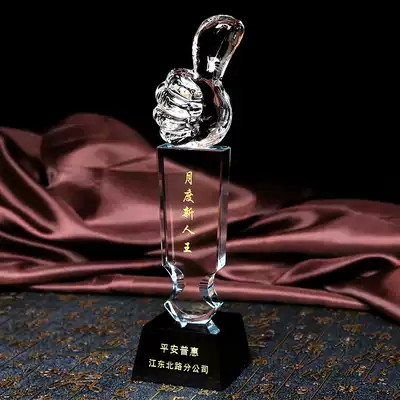 Cumulative custom spot crystal trophy custom free lettering Thumb trophy custom black base enterprise