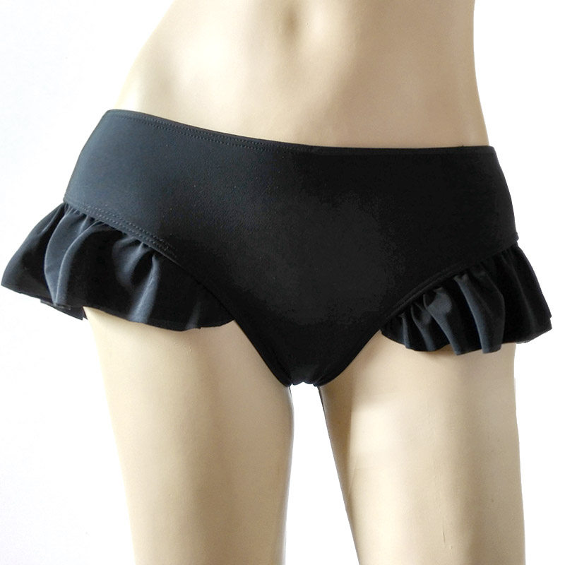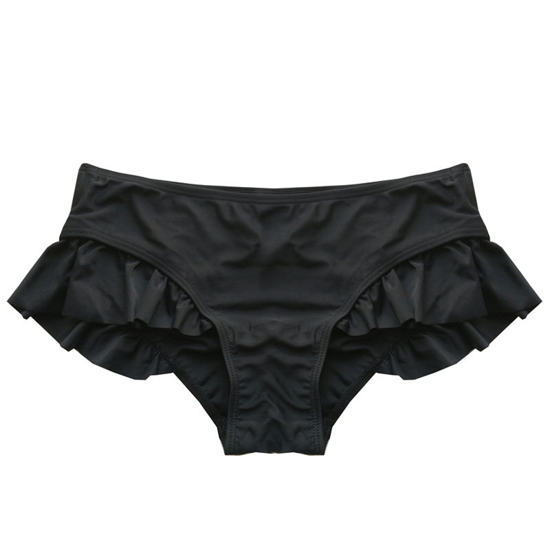 Ruffle cute large size women's bikini single sale black and white hip skirt three flat angle medium high waist swimming trunks kela