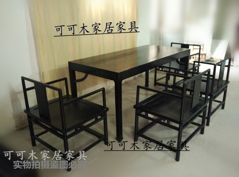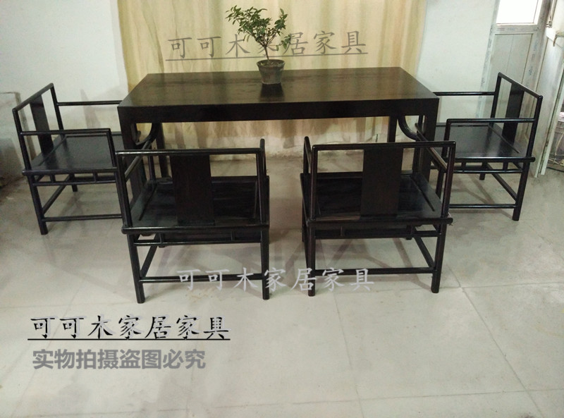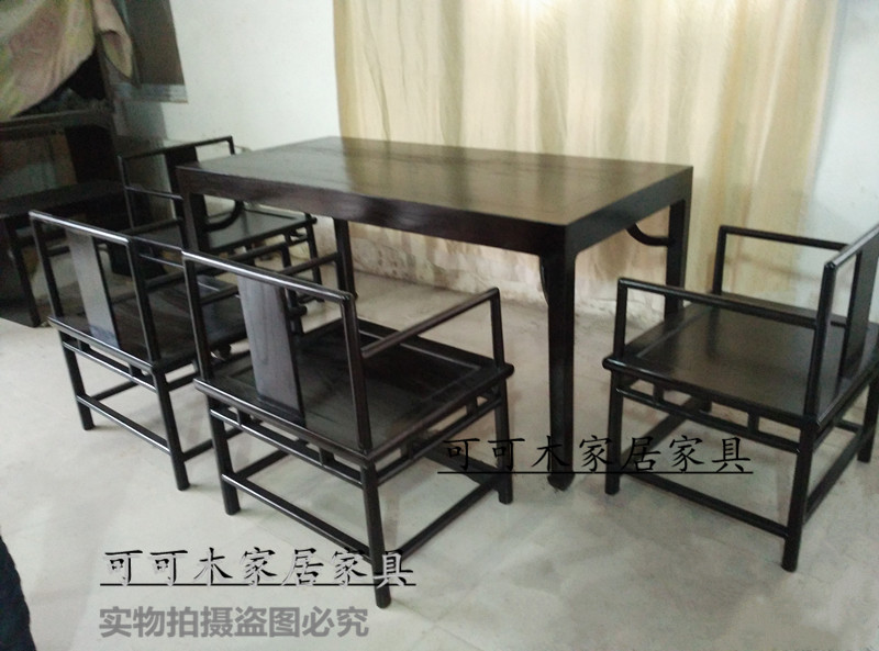 Old Elm Wood Table Dining Chair Solid Wood Tea Table Tea Chair Black Lacquer For Old Dining Room Complete Lacquered Home Innate Tea Table And Chairs Combination
