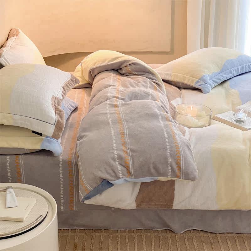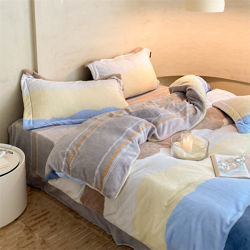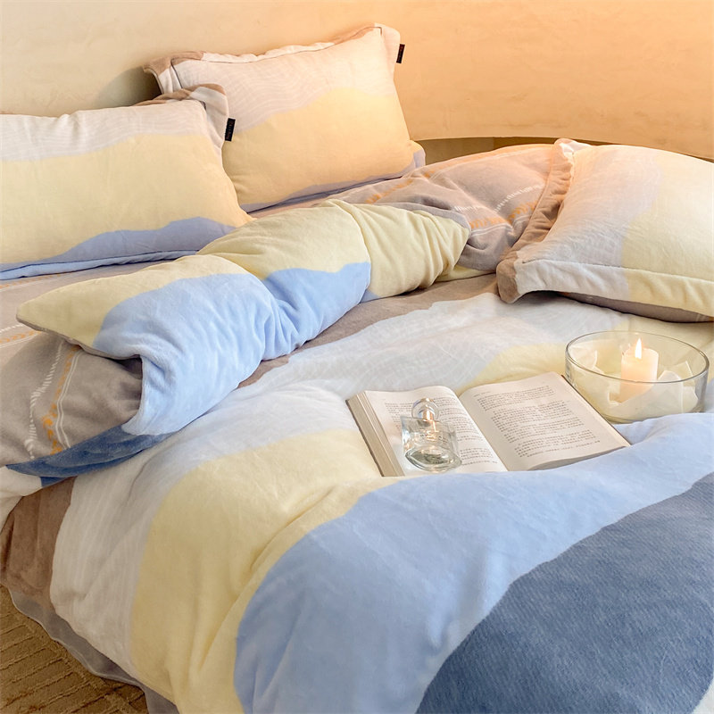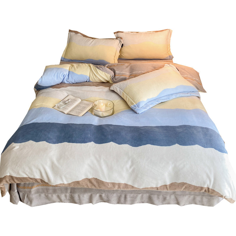Four-piece winter quilt cover winter plush milk velvet flange bedding four-piece set suede coral velvet thickened double-sided velvet