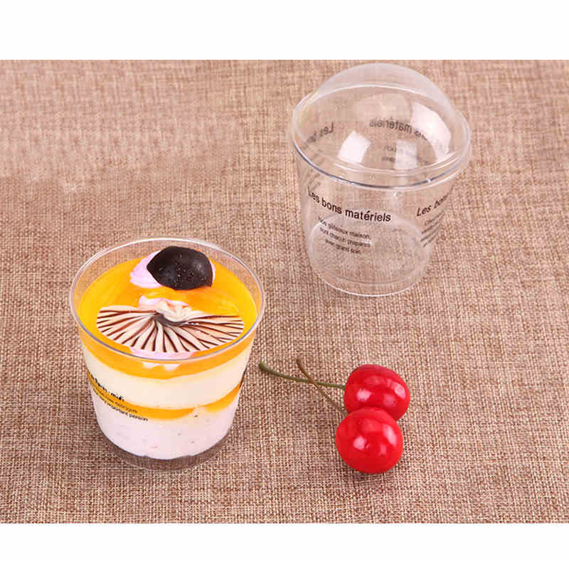Disposable wood bran cups 30 with cover and spoon Tiramisu baking pudding cup mousse cup thousand layer cake cup