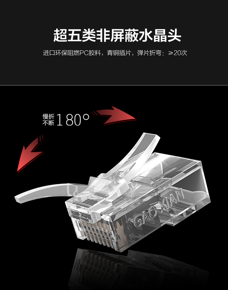 High quality tested six types of non - shielded RJ45 crystal head gold - free oxygen - copper trifork gigabit 8 core crystal head