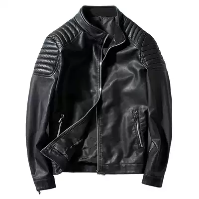 Thin slim jacket men's spring and autumn 2021 new business handsome leather jacket motorcycle leather clothing trend men's coat