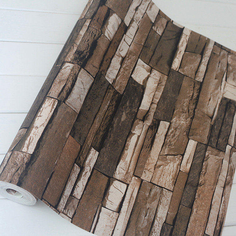 3d Coffee color brick-and-mortar wallpaper imitation ancient brick-and-mortar brick wallpaper Chinese style dining room hotel background wall retro bar