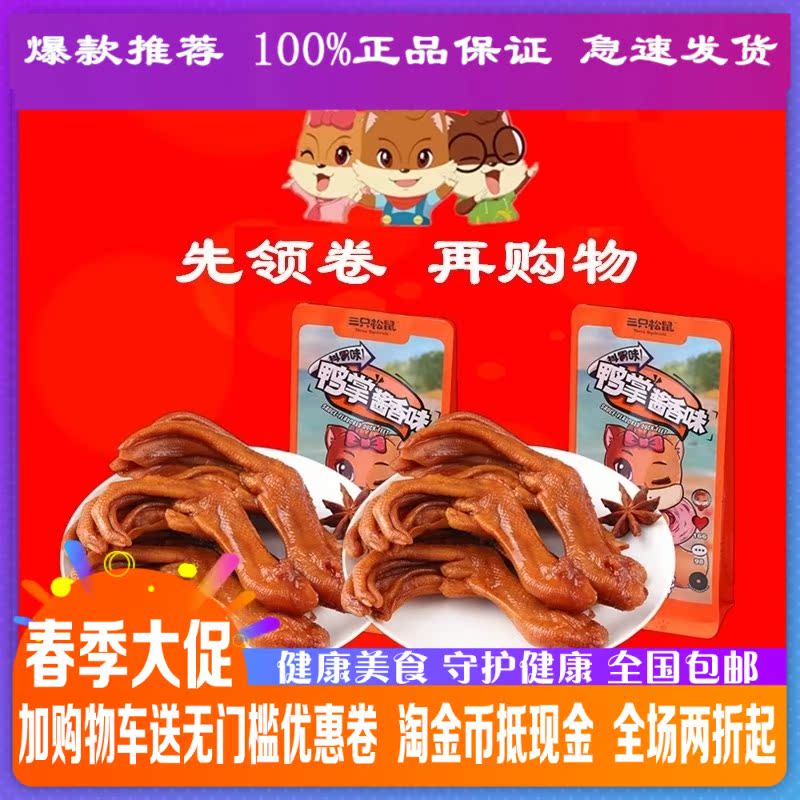 New stock Three squirrels Flagship No Bones Duck Palm 110gx2 Leisure snack Teater Spiced Duck Claws Mimey Spicy