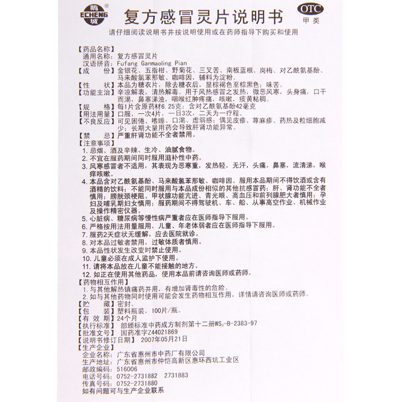 A Goose City compound cold hearse sheet 100 slices * 1 bottle of box wind hot cold fever Headache Nasal cough