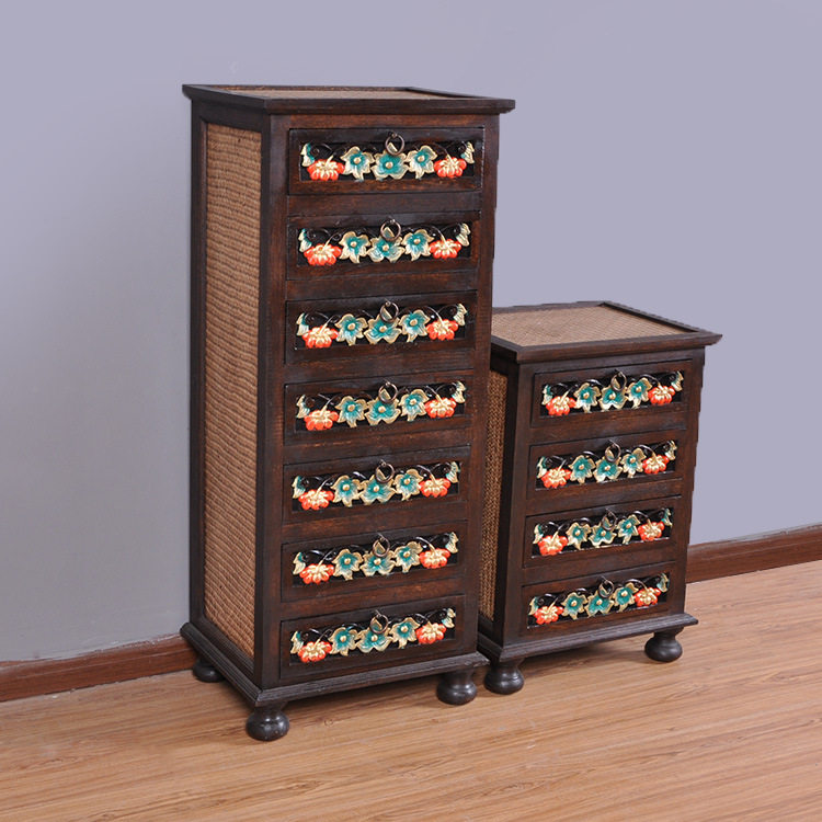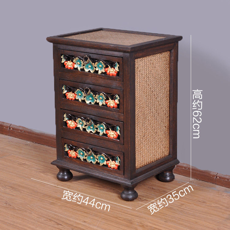 Thailand imported carved cabinet foyer bucket cabinet storage cabinet Thai retro bucket cabinet Southeast Asia carved bucket cabinet bedside table